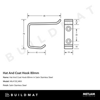 Metlam Hat And Coat Hook 80mm In Satin Stainless Steel