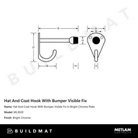 Metlam Hat And Coat Hook With Bumper Visible Fix In Bright Chrome Plate