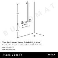 Metlam Offset Flush Mount Shower Grab Rail Right Hand In Satin Stainless Steel