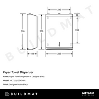 SpecificationMaterial: #304 Stainless SteelFinish: Designer Matte Black Mounting: Surface Mount Concealed FixDimensions: 376mmH x 282mmW x 104mmDFeatures: Unit fitted with tumbler lock Front View Paper Indicator Unit is supplied with... Read more