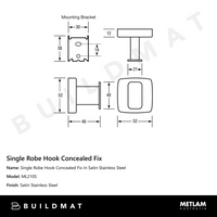 Metlam Single Robe Hook Concealed Fix In Satin Stainless Steel