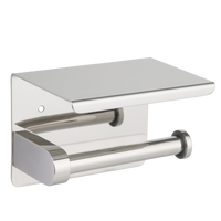 Metlam Single Toilet Roll Holder With Shelf Top In Polished Stainless Steel