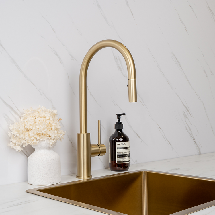 Mira Brushed Brass Gold Pull Out Mixer