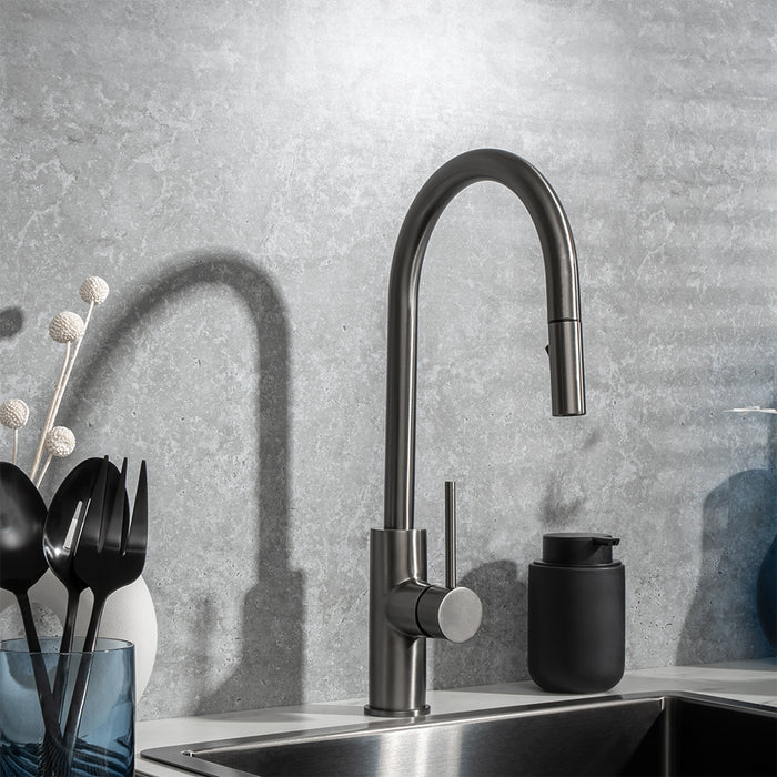WELS Rating: 4.5L/Min, 6Star Brass internals with hardwearing Gun Metal PVD finish 35mm Ceramic cartridge disk Height 435mm and Width 110mm Slimline Nozzle - 25mm diameter Pulldown and Veggie Spray function... Read more
