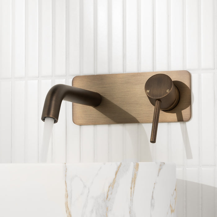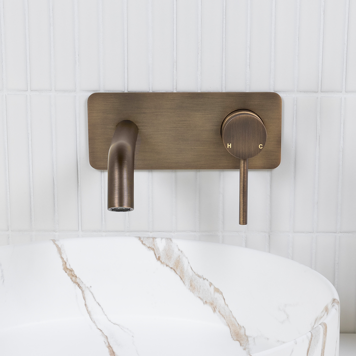 Mira Brushed Vintage Antique Brass Wall Mixer and Spout