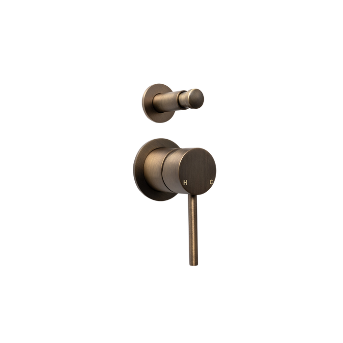 Mira Brushed Vintage Antique Brass Wall Mixer with divertor
