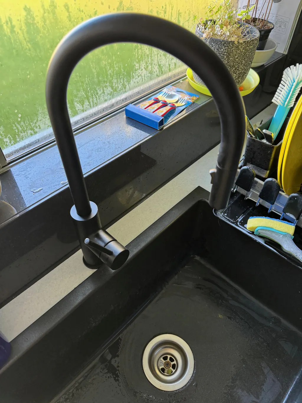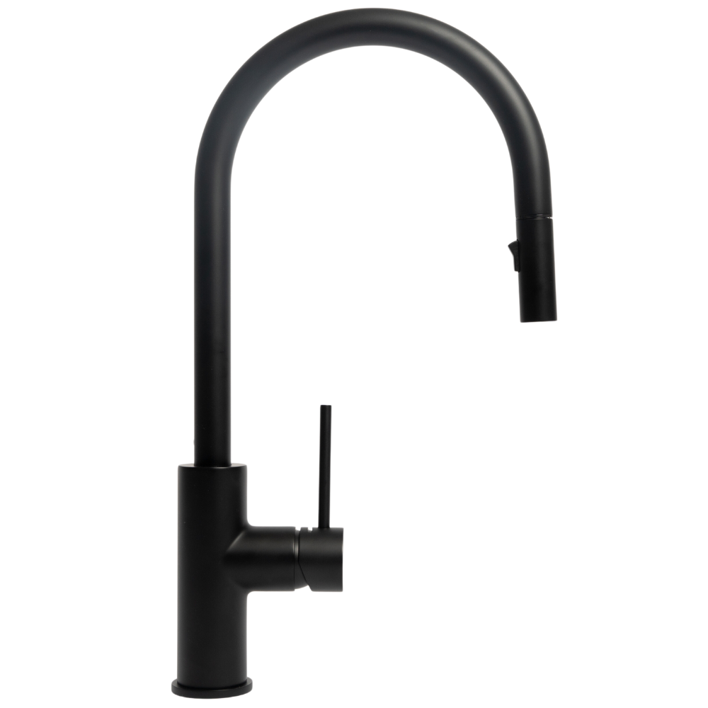 WELS Rating: 5L/Min, 5Star Brass internals with hardwearing Matte Black finish 35mm Ceramic cartridge disk Height 435mm and Width 110mm Slimline Nozzle - 25mm diameter Pulldown and Veggie Spray function capabilities Veggie... Read more