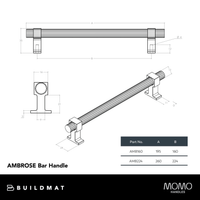 The Ambrose range is structured and bold, characterised by accentuated grooved bar and knob. Material: AluminiumStandard 22mm handle screws included Hole Centre: 160 Read more