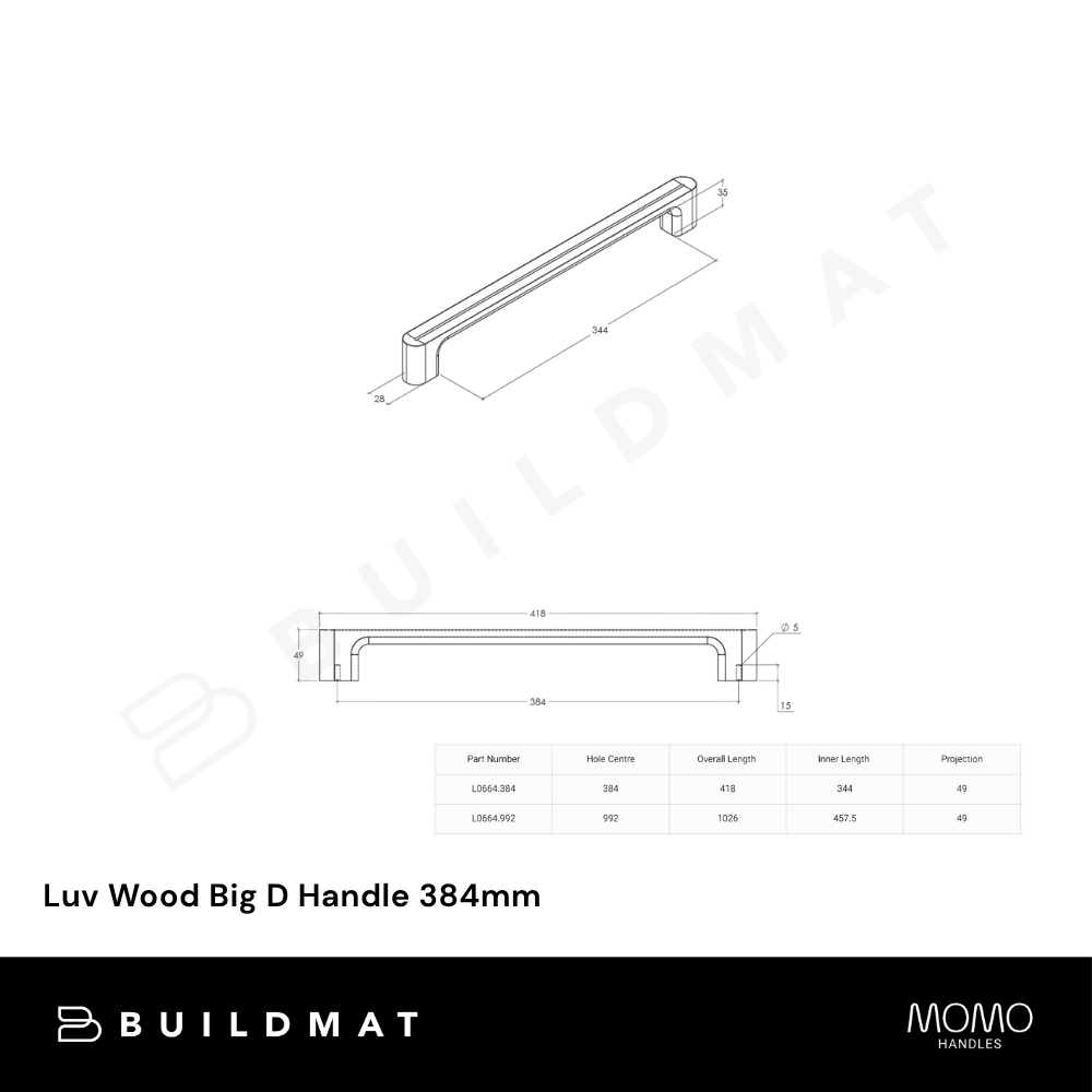 Momo Handles Luv Wood Big D Handle 384mm Oak