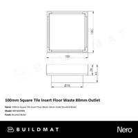 Product Type: Floor WasteProduct SKU: NRFW006BNColour: Brushed NickelMaterial: 304 Stainless SteelNote: 11.2mm deep insert can accommodate up to 10mm tile + adhesive Read more