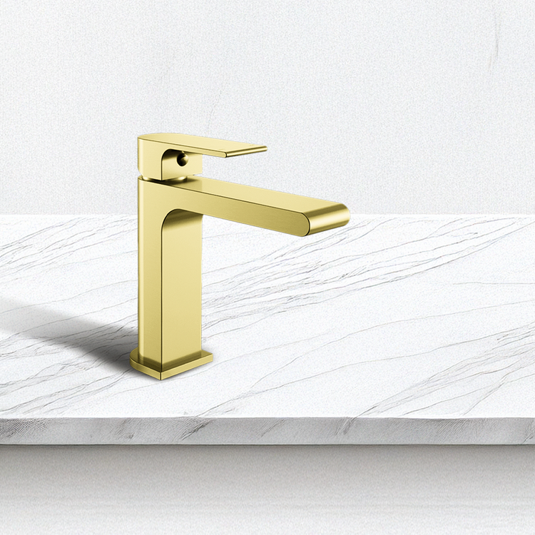 Nero Bianca Basin Mixer Straight Spout Brushed Gold