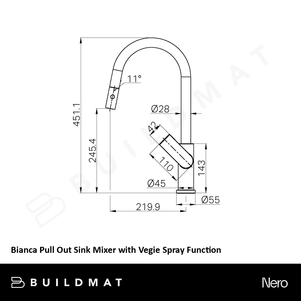 Nero Bianca Pull Out Sink Mixer with Vegie Spray Function Brushed Gold