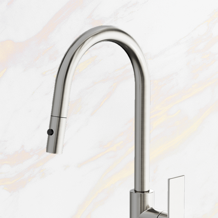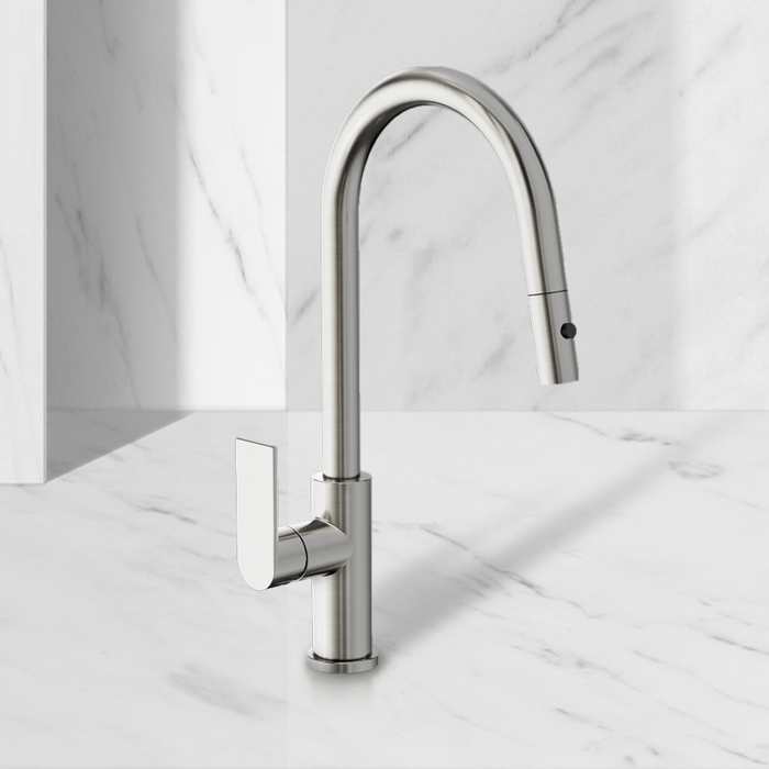 Nero Bianca Pull Out Sink Mixer with Vegie Spray Function Brushed Nickel