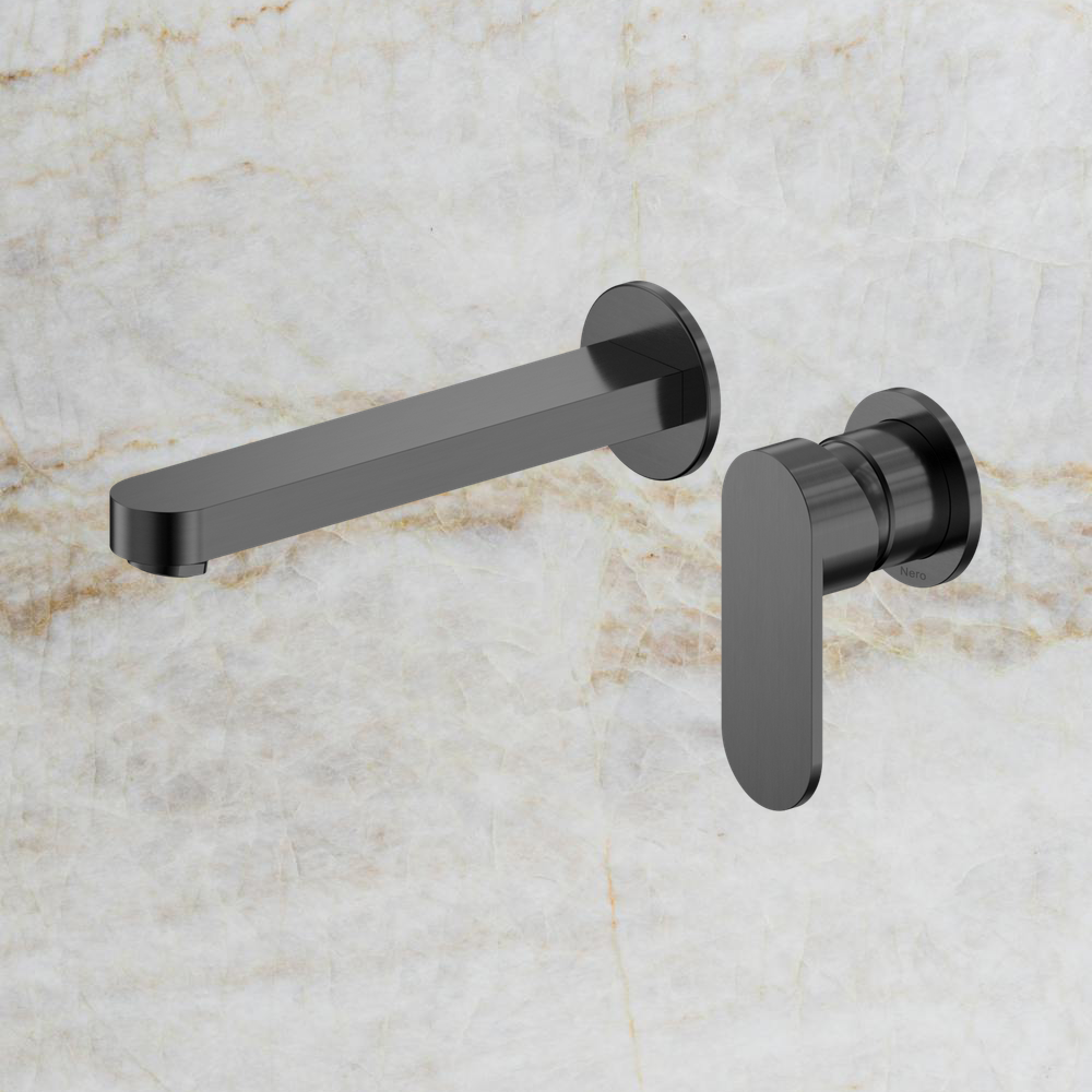 Nero Ecco Wall Basin/Bath Mixer with Separate Backplate 60mm Gunmetal