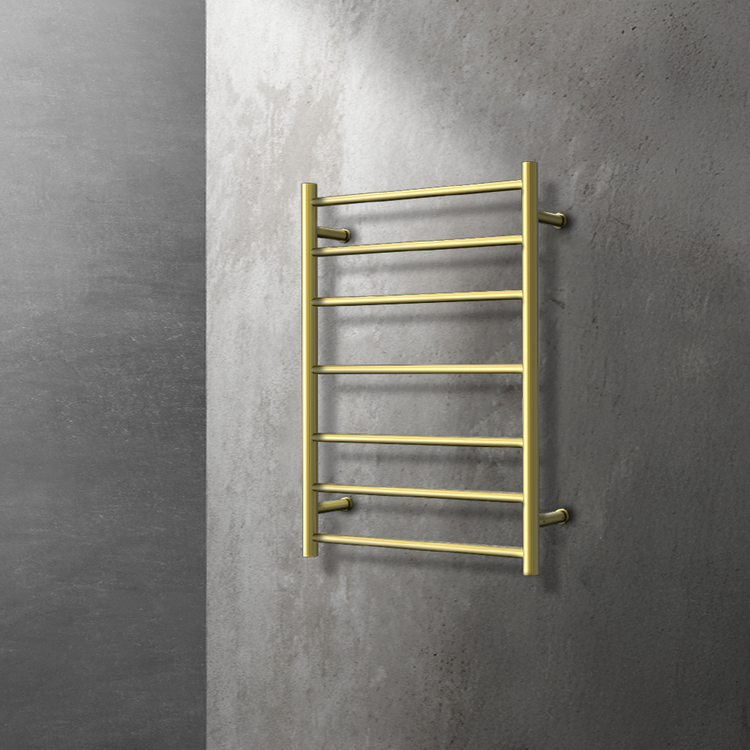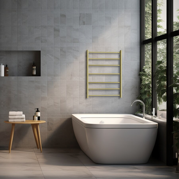 Nero Mecca 240V 7 Bar Heated Towel Ladder Brushed Gold