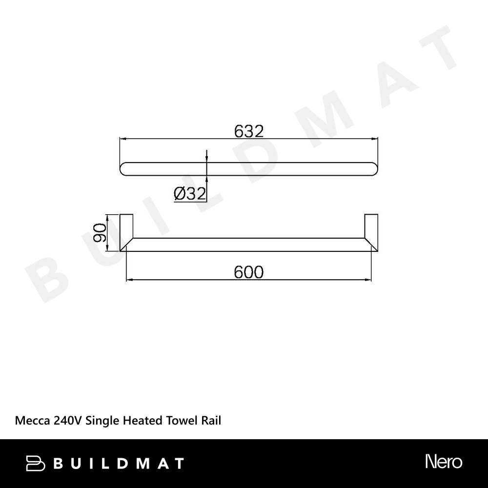 Nero Mecca 240V Single Heated Towel Rail Brushed Bronze