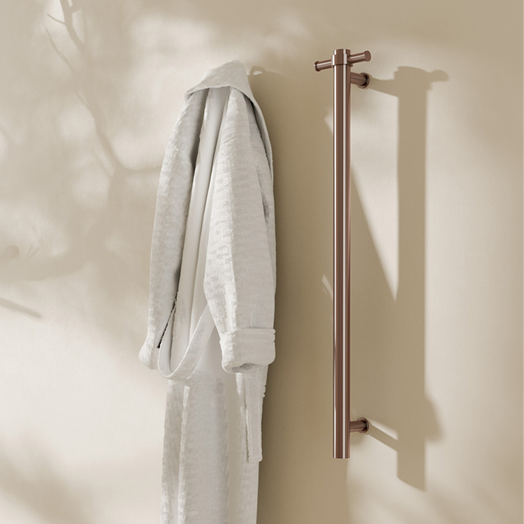 Product Type: Towel RailProduct SKU: NRV902HBZColour: Brushed BronzeMaterial: Stainless Steel Constructed from high-quality 304 stainless steel for durability and corrosion resistance. 240V powered for efficient towel heating. Single vertical rail... Read more