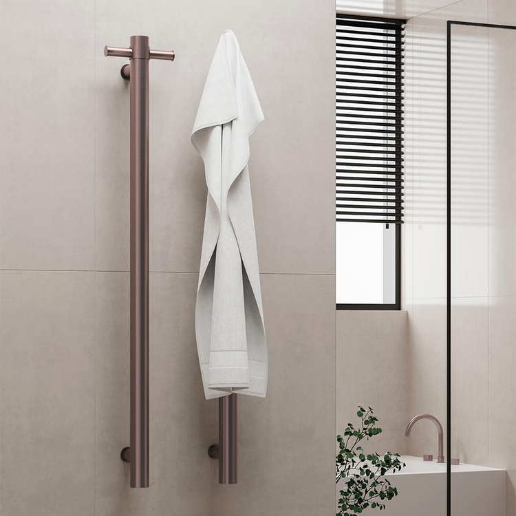 Nero Mecca 240V Single Vertical Heated Towel Rail Brushed Bronze