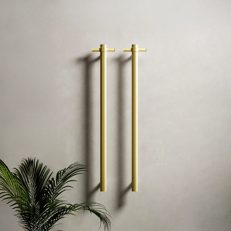 Nero Mecca 240V Single Vertical Heated Towel Rail Brushed Gold