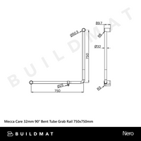 Nero Mecca Care 750x750mm 90 degree Bent Tube Grab Rail Brushed Bronze