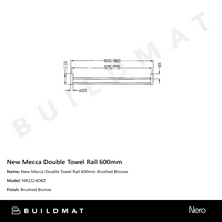 Nero New Mecca Double Towel Rail 600mm Brushed Bronze