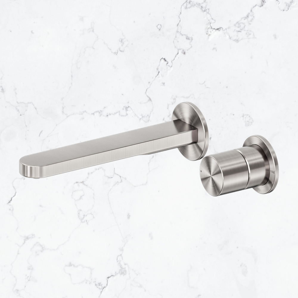 Nero Pure SS316L Progressive Wall Basin/Bath Mixer Separate Back Plate Brushed Nickel
