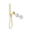 Nero Serenity Progressive Shower System With Arabescato Corchia Handle And Slim Shower Brushed Gold