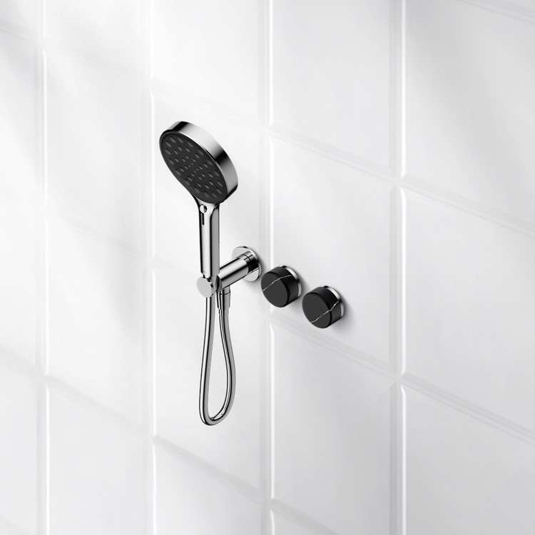 Nero Serenity Progressive Shower System With Marquina Black Handle And Serenity Hand Shower Chrome