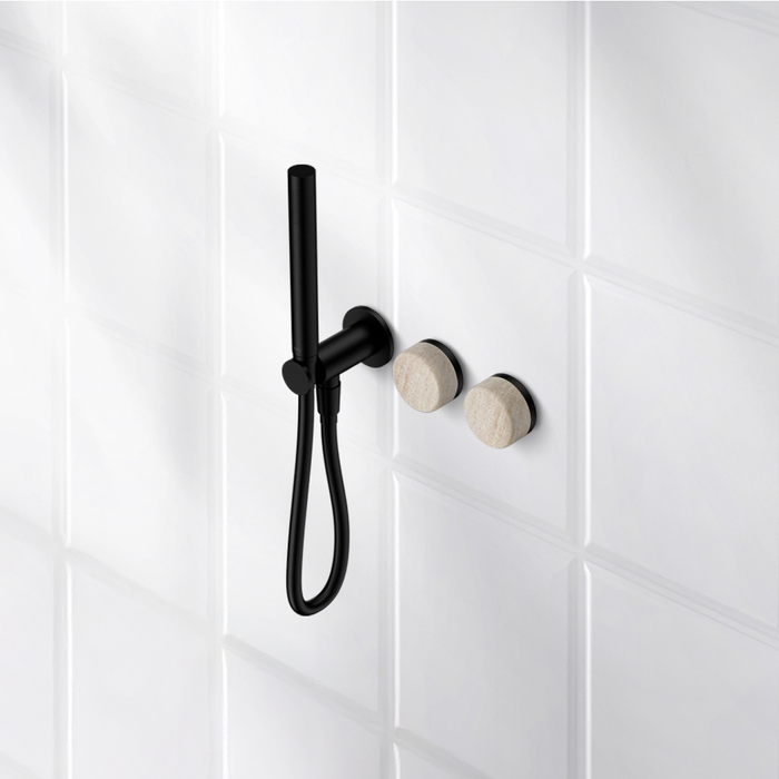 Nero Serenity Progressive Shower System With Rome Travertine Handle And Slim Shower Matte Black