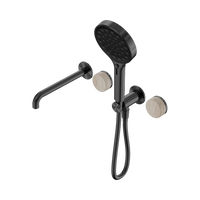 Nero Serenity Progressive Shower System With Spout With Rome Travertine Handle And Serenity Hand Shower Gunmetal