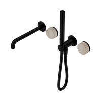 Nero Serenity Progressive Shower System With Spout With Rome Travertine Handle And Slim Shower Matte Black