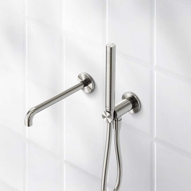 Nero Serenity Progressive Shower System With Spout With Verde Alpi Handle And Slim Shower Brushed Nickel