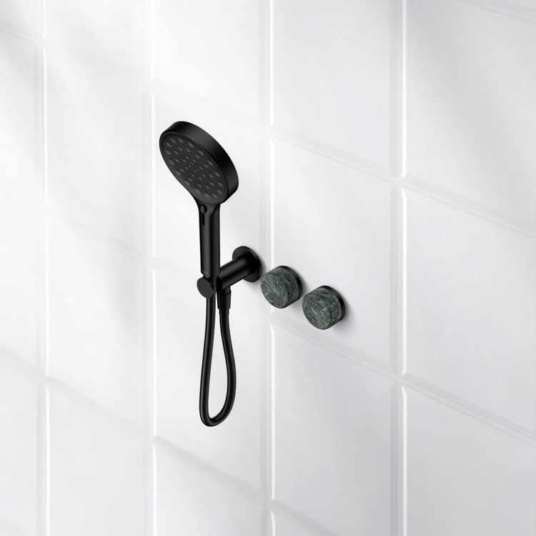 Product TypeShower System ColourMatte Black MaterialBrass And Natural Marble WELS Rating4 Stars WELS Registration NoS18742 Note: Custom handle, delivered within 6 weeks. Read more
