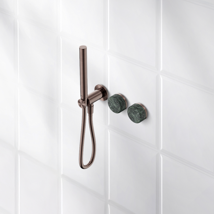 Product TypeShower System ColourBrushed Bronze MaterialBrass And Natural Marble WELS Rating3 Stars WELS Registration NoS18740 Note: Custom handle, delivered within 6 weeks. Read more