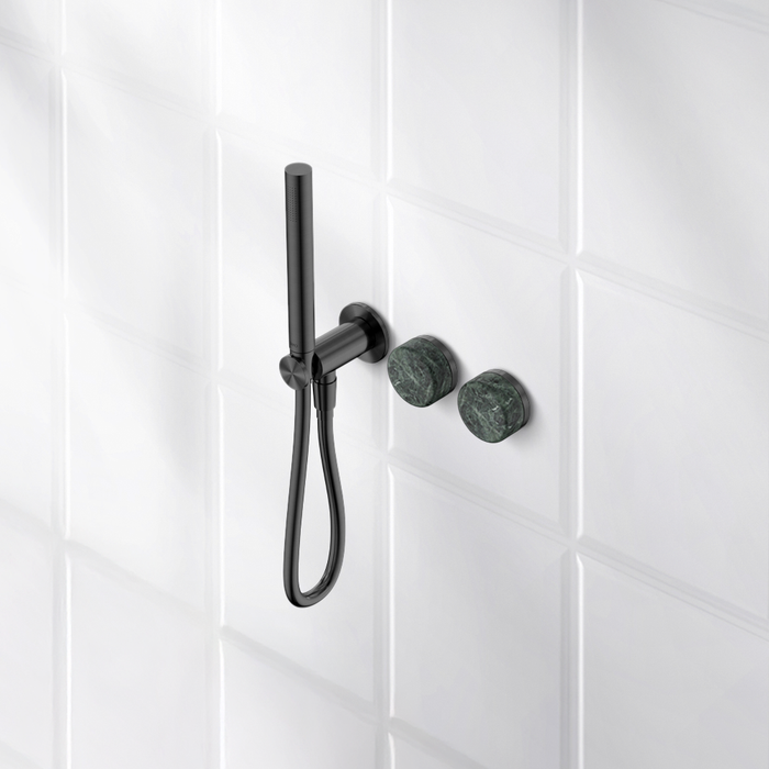 Product TypeShower System ColourGunmetal MaterialBrass And Natural Marble WELS Rating3 Stars WELS Registration NoS18740 Note: Custom handle, delivered within 6 weeks. Read more