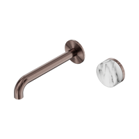 Nero Serenity Progressive Wall Basin Mixer 185mm Spout With Arabescato Corchia Handle Brushed Bronze