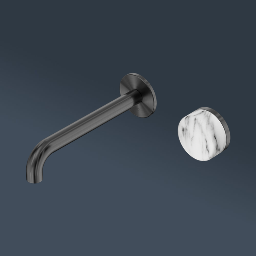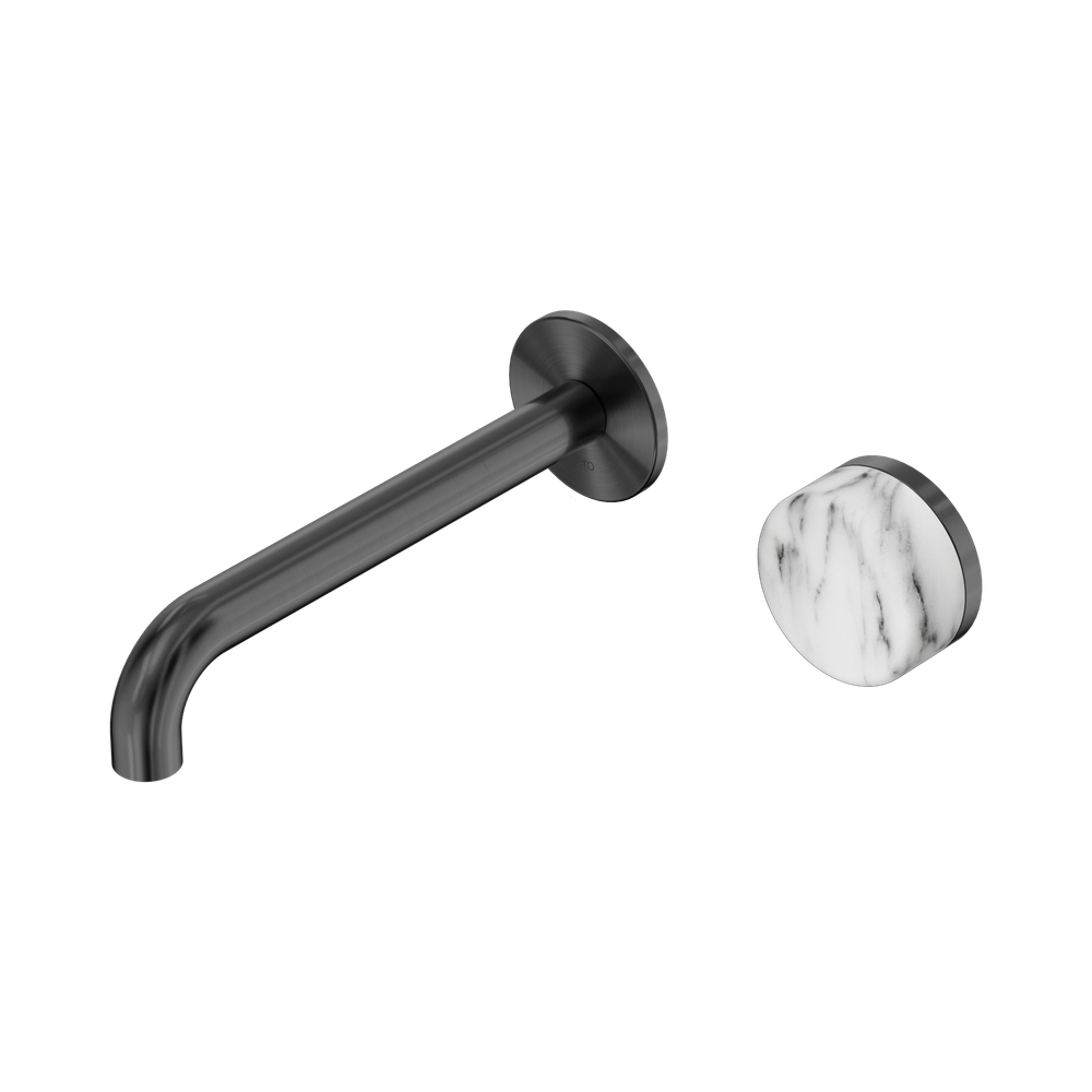 Nero Serenity Progressive Wall Basin Mixer 185mm Spout With Arabescato Corchia Handle Gunmetal