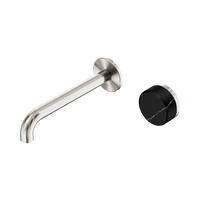 Nero Serenity Progressive Wall Basin Mixer 185mm Spout With Marquina Black Handle Brushed Nickel