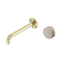 Nero Serenity Progressive Wall Basin Mixer 185mm Spout With Rome Travertine Handle Brushed Gold