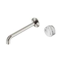 Nero Serenity Progressive Wall Basin Mixer 220mm Spout With Arabescato Corchia Handle Brushed Nickel