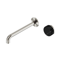 Nero Serenity Progressive Wall Basin Mixer 220mm Spout With Marquina Black Handle Brushed Nickel