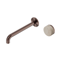 Nero Serenity Progressive Wall Basin Mixer 220mm Spout With Rome Travertine Handle Brushed Bronze