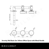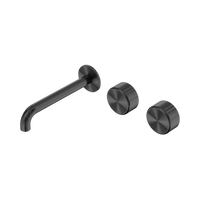Nero Serenity Wall Basin Set 160mm Offset Spout with Metal Handle Gunmetal