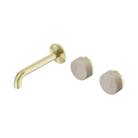 Nero Serenity Wall Basin Set 160mm Offset Spout With Rome Travertine Handle Brushed Gold