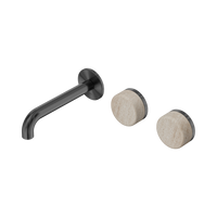 Nero Serenity Wall Basin Set 160mm Offset Spout With Rome Travertine Handle Gunmetal
