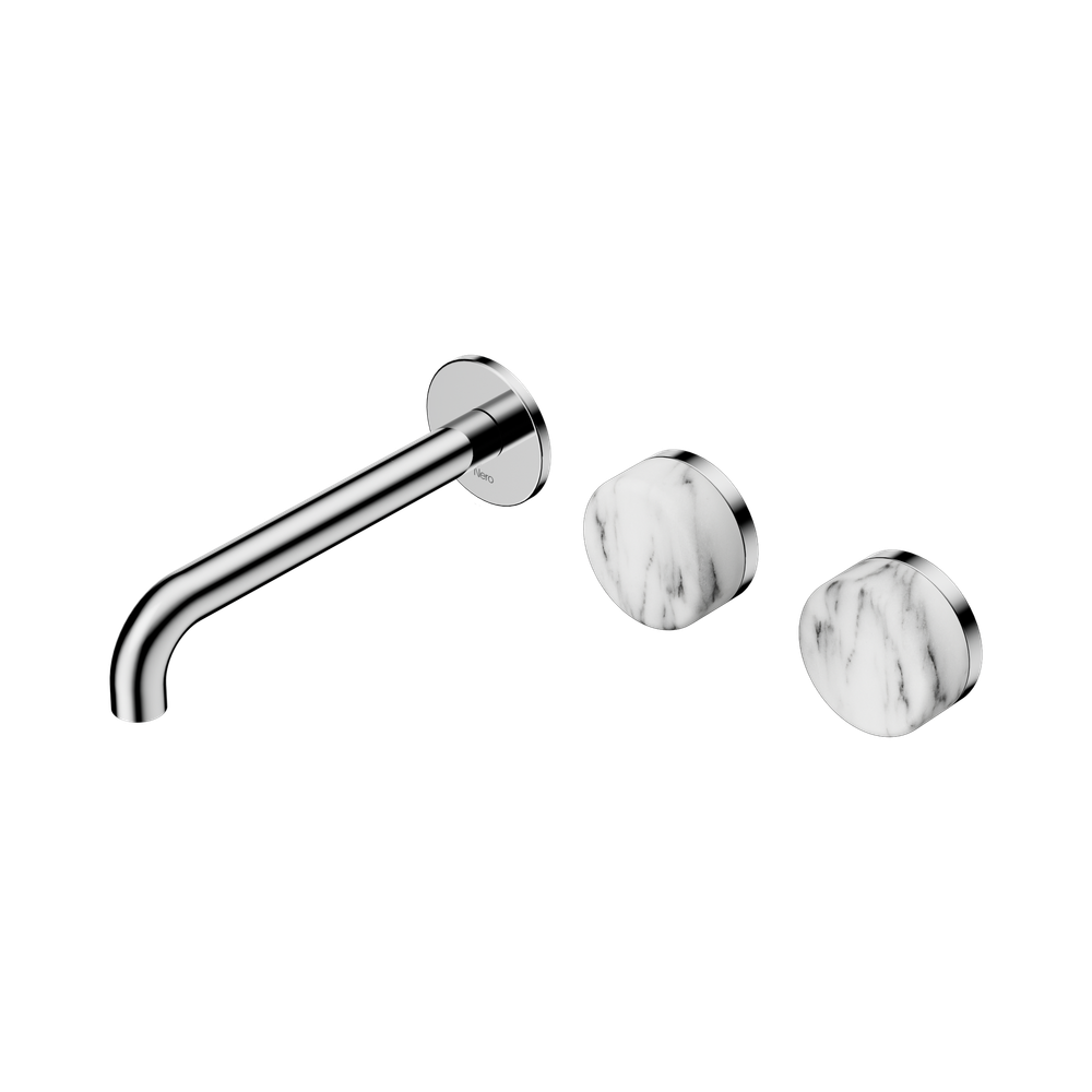 Nero Serenity Wall Basin Set 185mm Offset Spout With Arabescato Corchia Handle Chrome