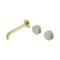 Nero Serenity Wall Basin Set 185mm Offset Spout With Rome Travertine Handle Brushed Gold