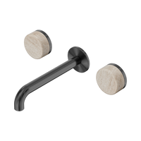 Nero Serenity Wall Basin Set 185mm Spout With Rome Travertine Handle Gunmetal