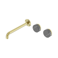 Nero Serenity Wall Basin Set 220mm Offset Spout With Carrara Handle Brushed Gold
