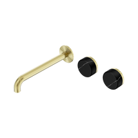 Nero Serenity Wall Basin Set 220mm Offset Spout With Marquina Black Handle Brushed Gold